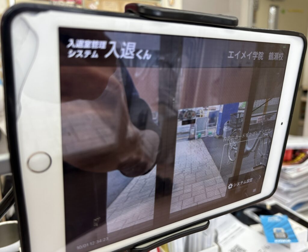 通塾した生徒たちは、入室時、退出時に専用のQRをコードをタブレットにかざすと、