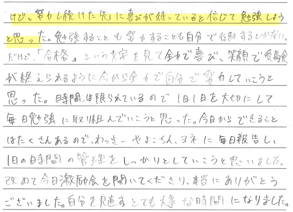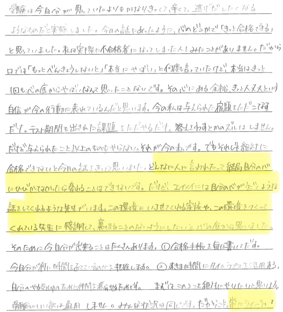 【生徒】受験後に言い訳してるダサい自分にはならない