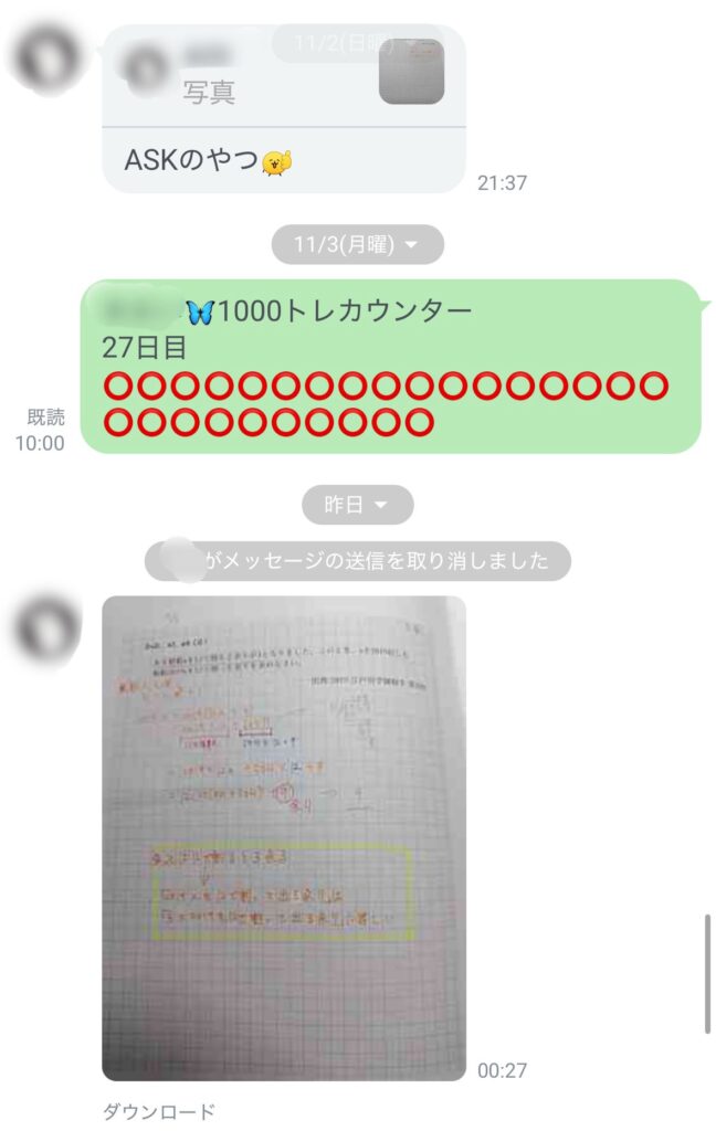 1000トレなど毎日数学の報告をしている、3Hの2人。できないことをできるようにする、結局これの繰り返しでしかできるようにならんから。この継続が素晴らしい。