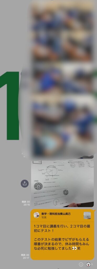 この日の授業はおうぎ形の内容だったので、本物のピザを使って授業しました!