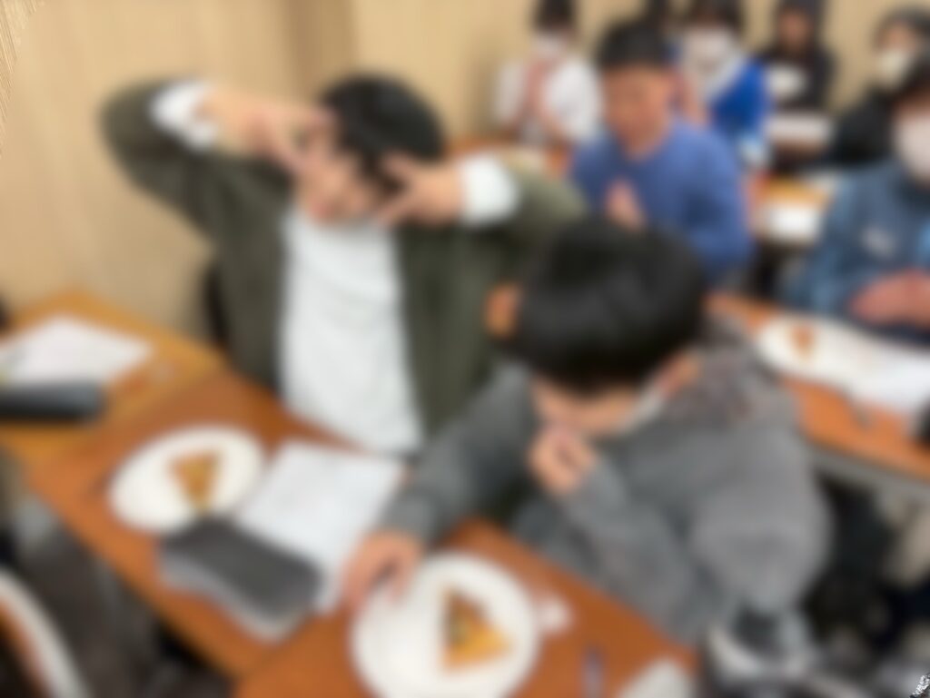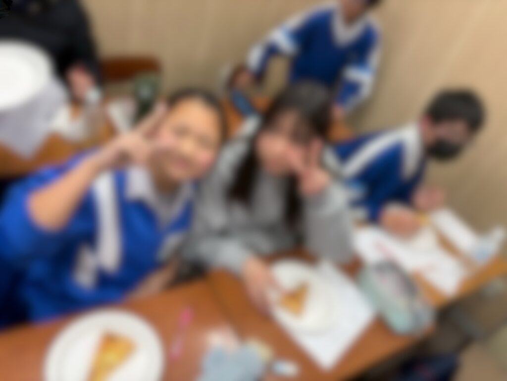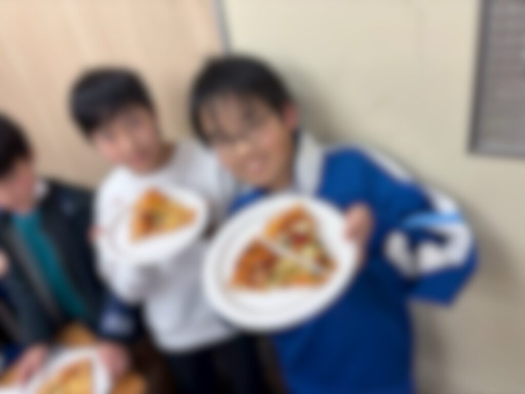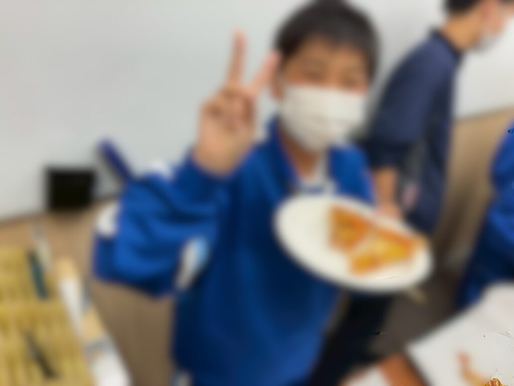 期末テストも終わったので、2学期お疲れ様の意味も込めて、気持ちばかりのピザパーティーを行いました(*^^*)