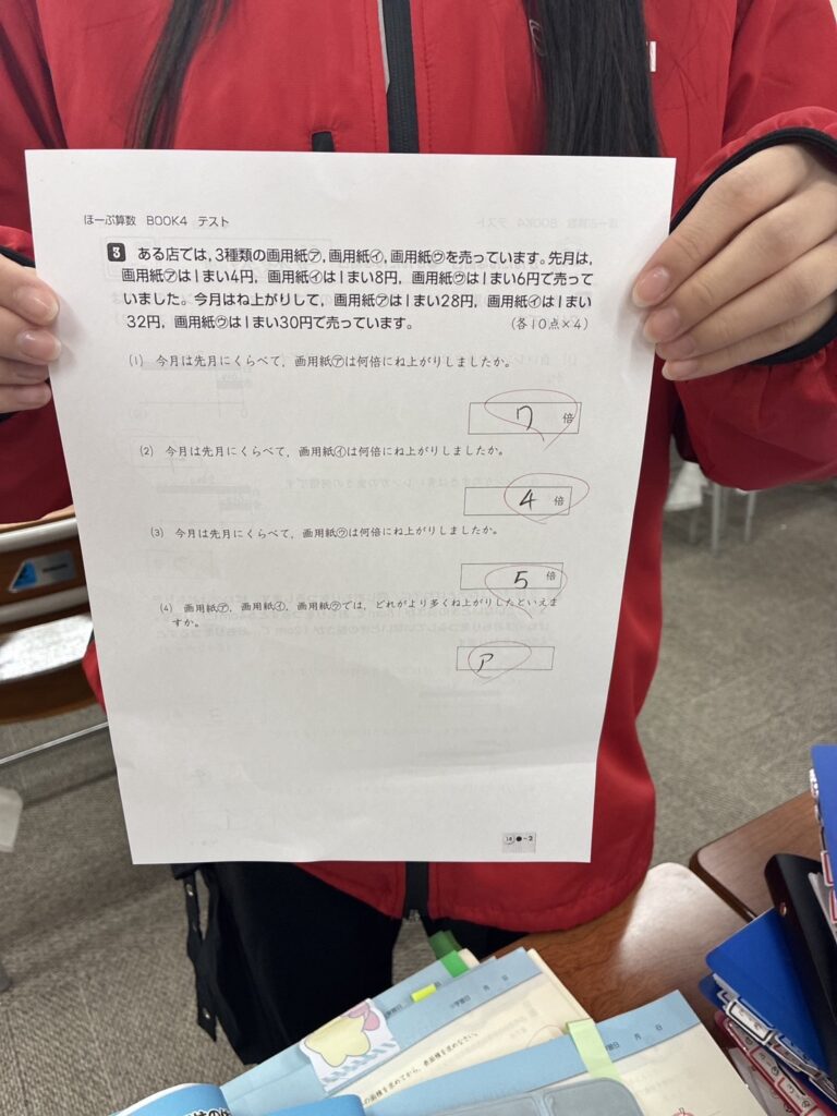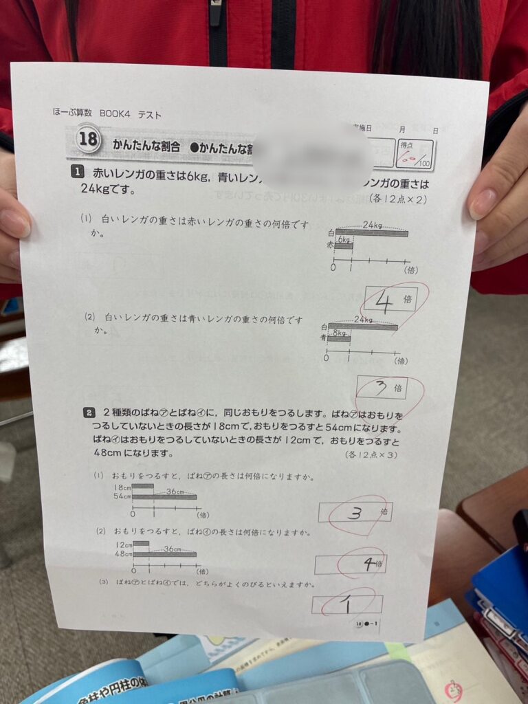 そんな割合の単元で100点!!素晴らしい!次回も頑張ろう🥺