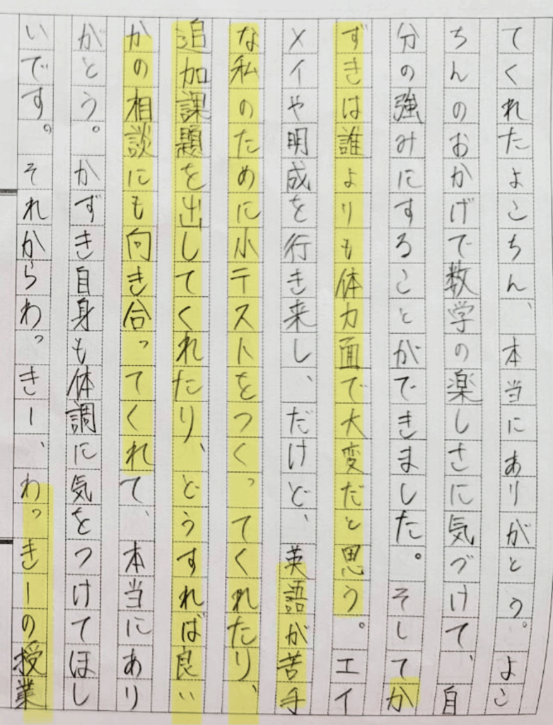 生徒の行動と、保護者様の想い