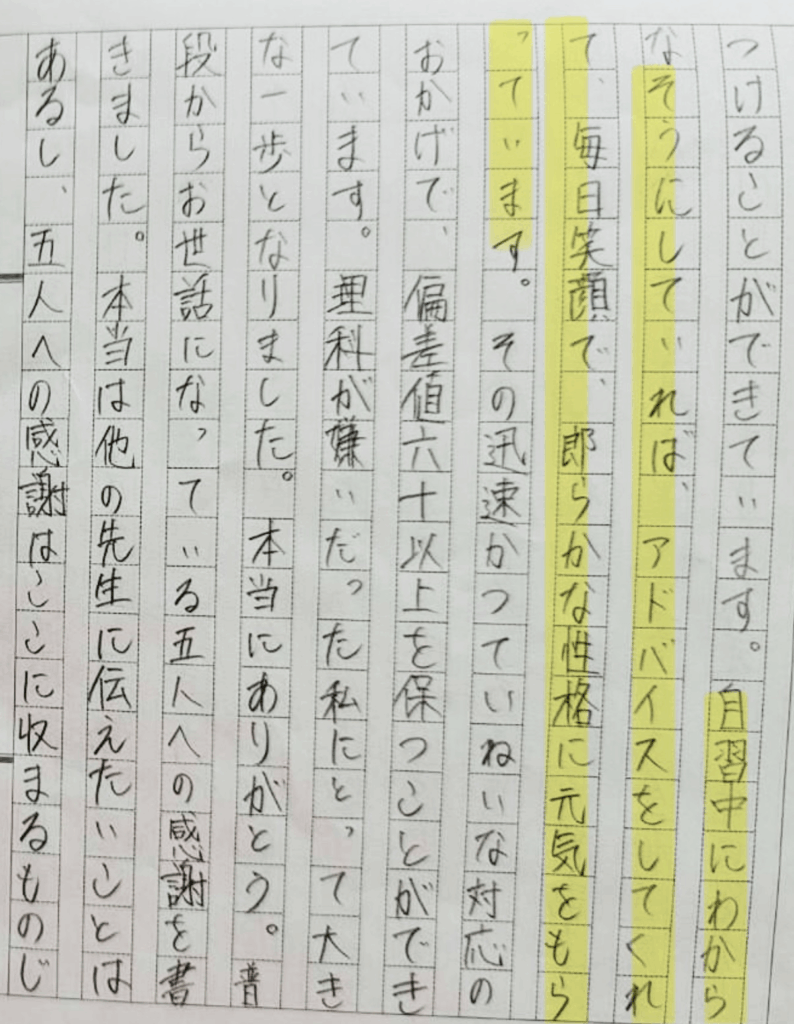 自分自身に納得のできる受験生になってほしい。