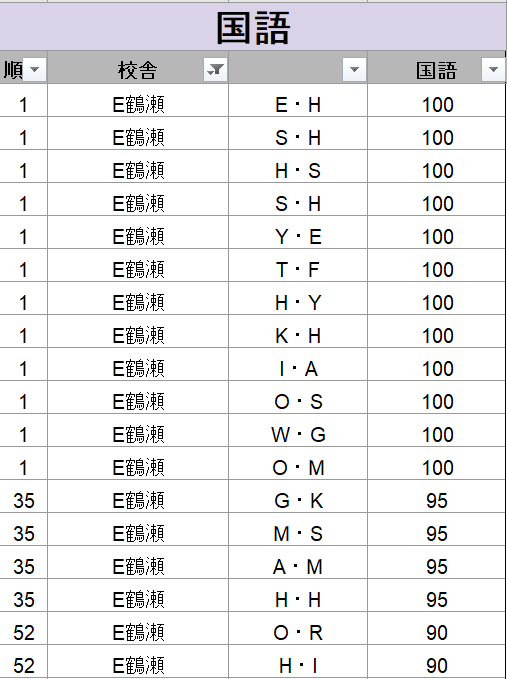 左側の数字は全校舎の順位で、