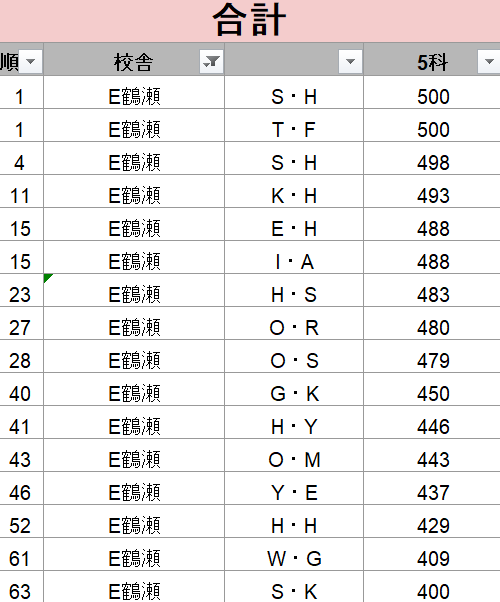 エイメイ鶴瀬校舎個人ランキング!
