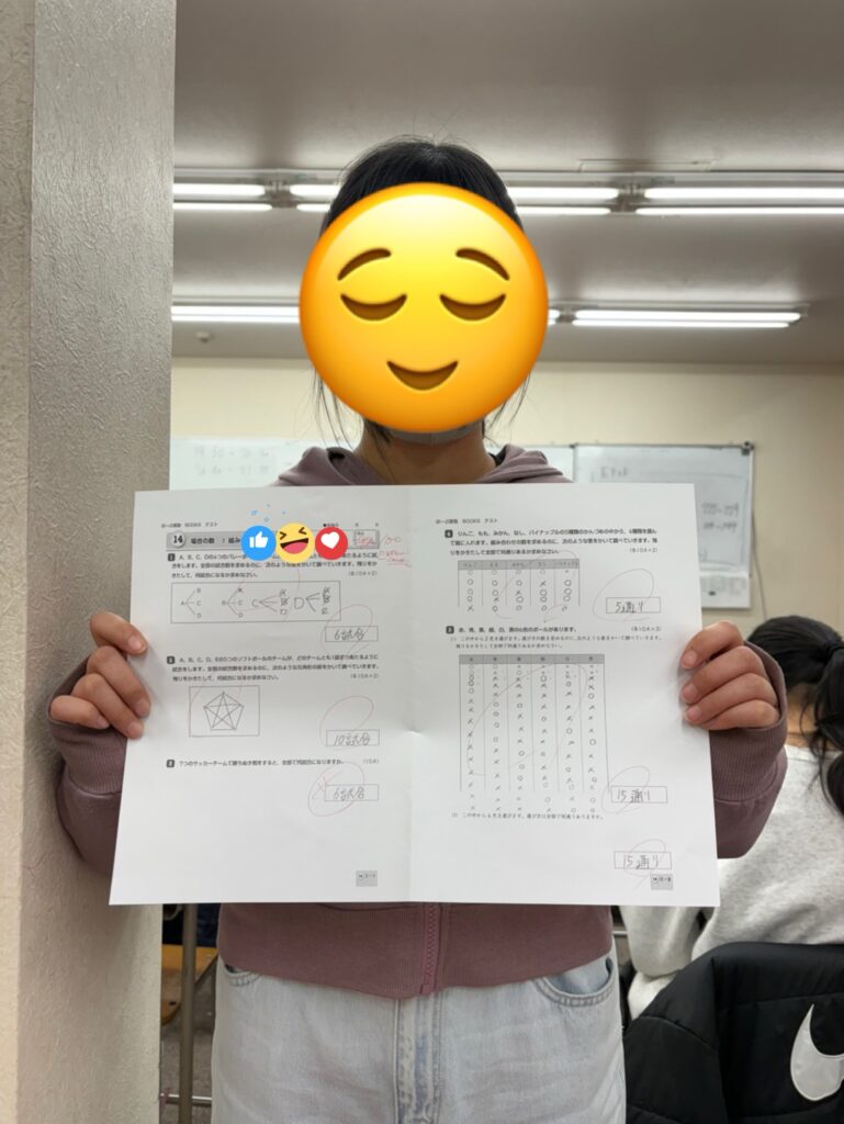 中2で習う「確率」に繋がり小6の単元で見事満点💯!素晴らしい!次回もファイトだ!