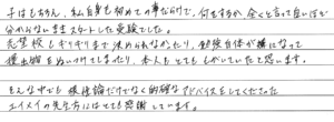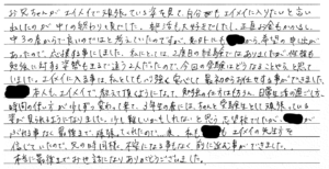 三人お世話になりましたが、それぞれむずかしい子ではなかったかと思いますが、どの子にも心身に寄りそってくれました。