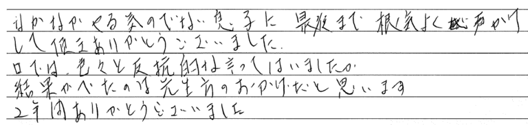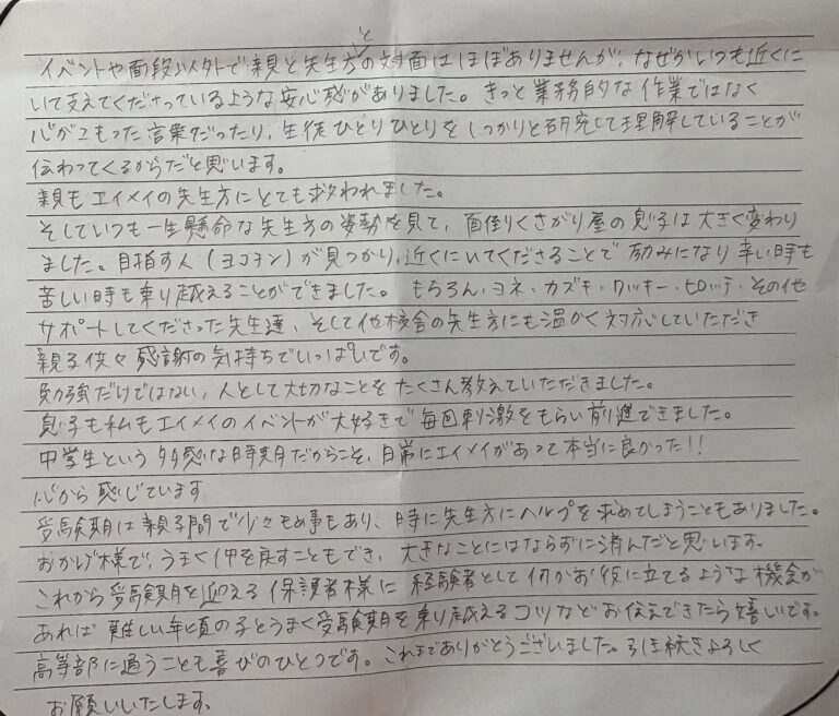 本人も先生の言葉でやる気を出し親から見ても勉強頑張っている姿を見る事ができました。