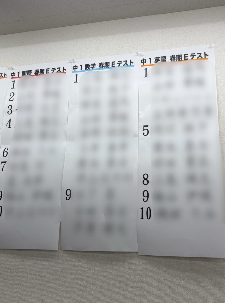 春休みの最後に行ったEテストの順位を教室に貼り出しました!