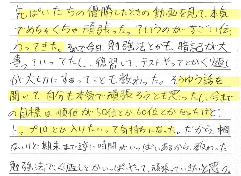 みんなには、先輩の大勉強大会の優勝の瞬間の動画を見てもらいました!