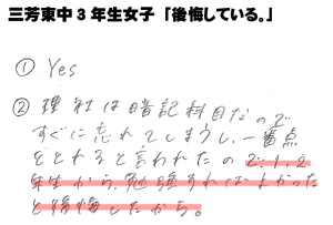「今までこんなに勉強したことなかったから、テストが不安。今までは、結果が出なくても気にしてなかったけど、今回結果が出ないのが怖い。」