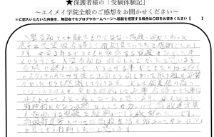 学校生活と塾との両立になれるまで大丈夫か?心配しておりましたが弱音を吐くことなく自ら通い勉強し続けることが出来たこと、エイメイに通わせて良かったと心から思っています。