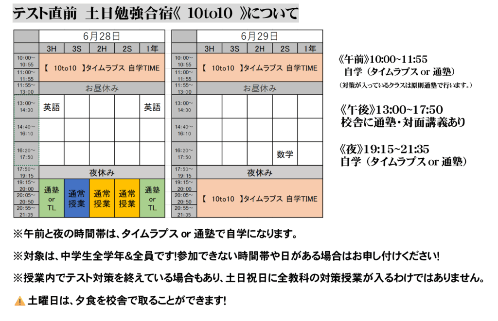 そして、テスト直前の土日は、朝10時から夜10時まで勉強する10to10をやっています。