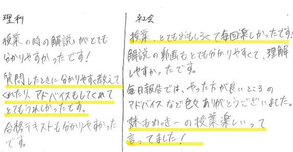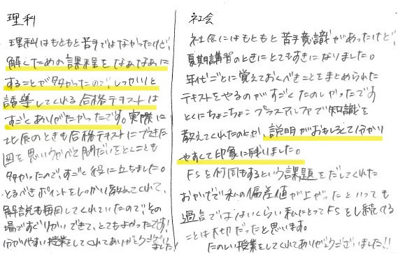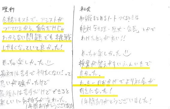 校舎平均で、理社共に60近くの偏差値まで上げることができました!