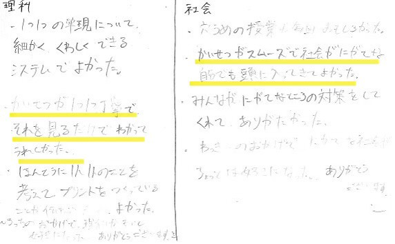 実際に授業を受けての感想や意見をかいてもらっています!