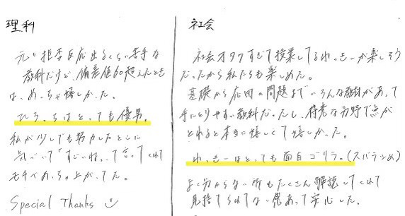 ▼授業が答えやすい雰囲気で良かった。わっきーのおかげで社会が好きになった✨