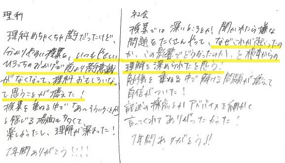 3年生の最後の授業には来年にむけた改善を行いたいと考えていますので